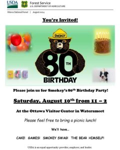 Happy Birthday to Smokey the Bear! Saturday, Aug 10th 11-2 Ottawa Visiter Center